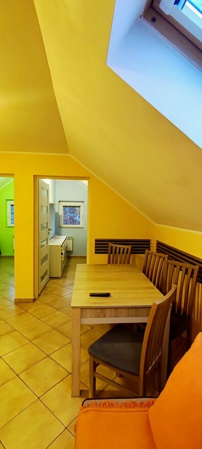 Do wynajęcia dwa osobne apartamenty(piętro albo parter) lub cały dom. Osobne niezależne wejścia. W każdym z apartamentów znajdują się dwa mniejsze pokoje i trzeci duży z wyposażonym aneksem kuchennym no i oczywiście łazienka. Maksymalnie cały dom to 12 osób tj. 6 par.
