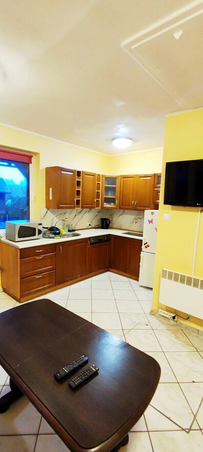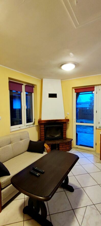 Dzień dobry.Do wynajęcia dwa osobne apartamenty(piętro albo parter) lub cały dom. Osobne niezależne wejścia. W każdym z apartamentów znajdują się dwa mniejsze pokoje i trzeci duży z wyposażonym aneksem kuchennym no i oczywiście łazienka. Maksymalnie cały dom to 12 osób tj. 6 par.